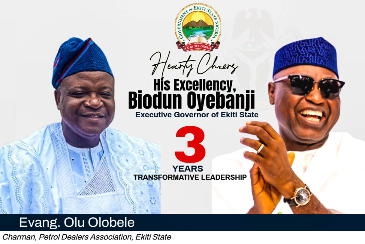 The Executives and members of Petroleum Dealers Association of Nigeria(PEDAN), Ekiti State Chapter under its Chairman, Evangelist Olu Olobele have congratulated Governor Biodun Oyebanji(BAO) on the occasion of the third anniversary of his administration, saying Ekiti has recorded remarkable progress under his leadership